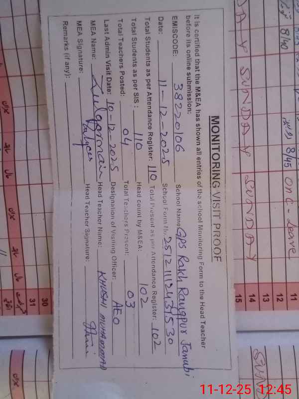 | EMIS Code: 38220106 | Name of School: GPS RAKH RANGPUR JANUBI | |||