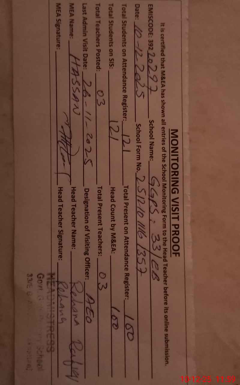 | EMIS Code: 39220297 | Name of School: GGPS 33 EB | |||