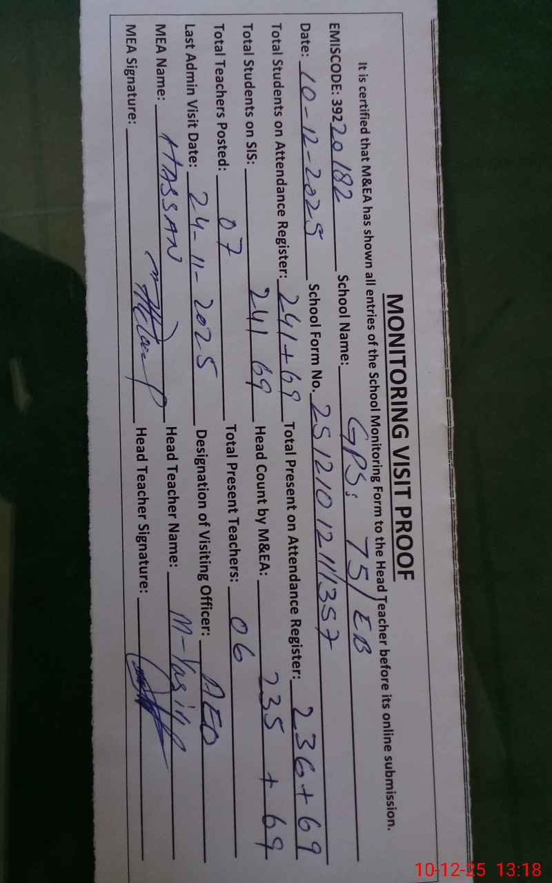 | EMIS Code: 39220182 | Name of School: GPS 75 EB P/O SAME | |||
