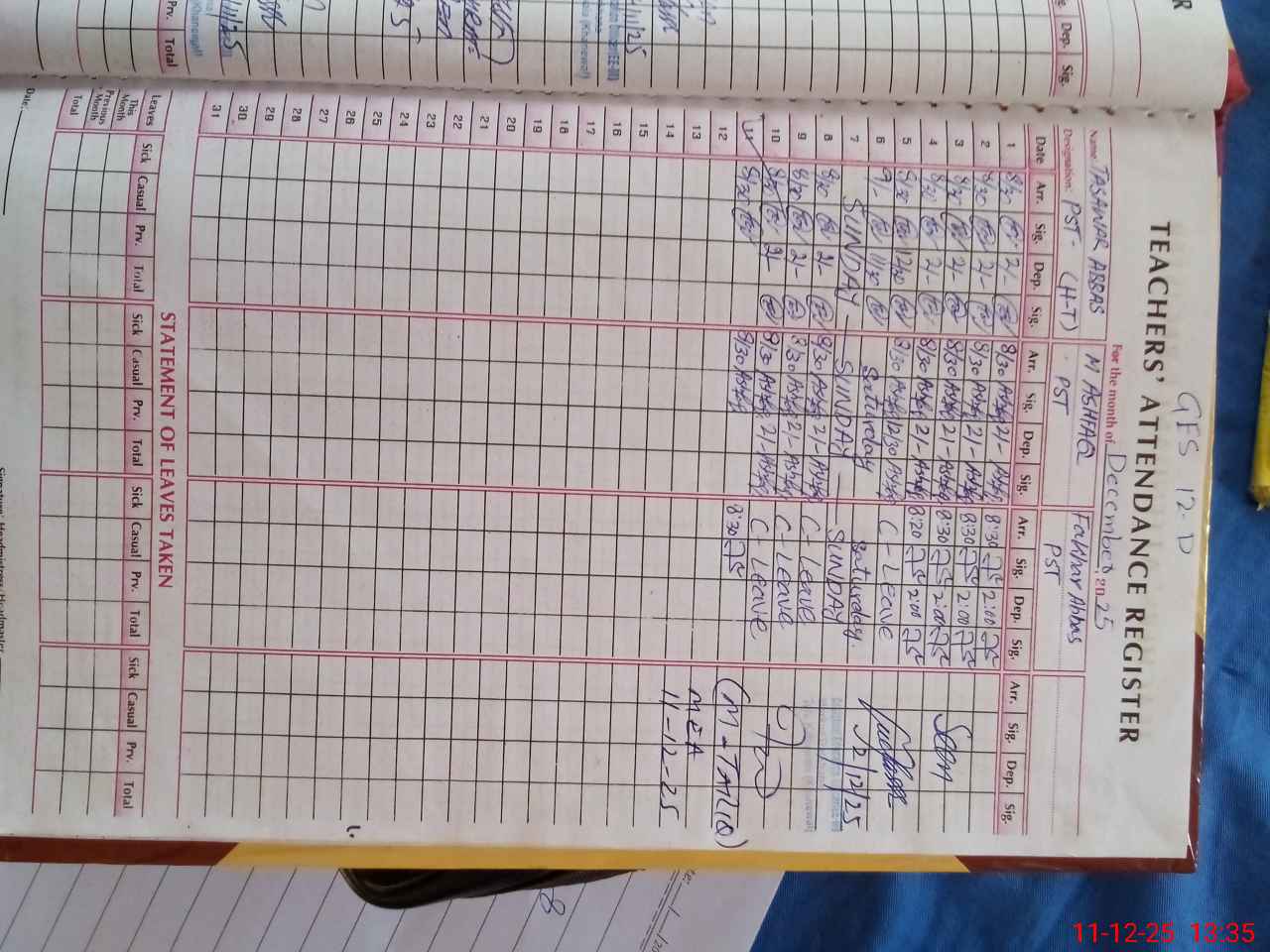| Name: Ta**** Ab**** Designation: (School Headmaster's/Headmistress's) PST Phone/Cell Number: 03**** |