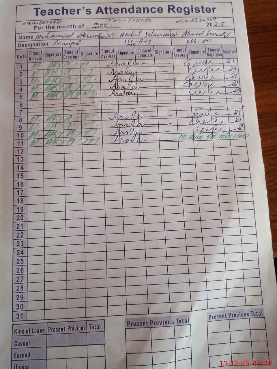 | Name: AB**** BU**** Designation: (School Headmaster's/Headmistress's) PRINCIPAL Phone/Cell Number: 03**** |
