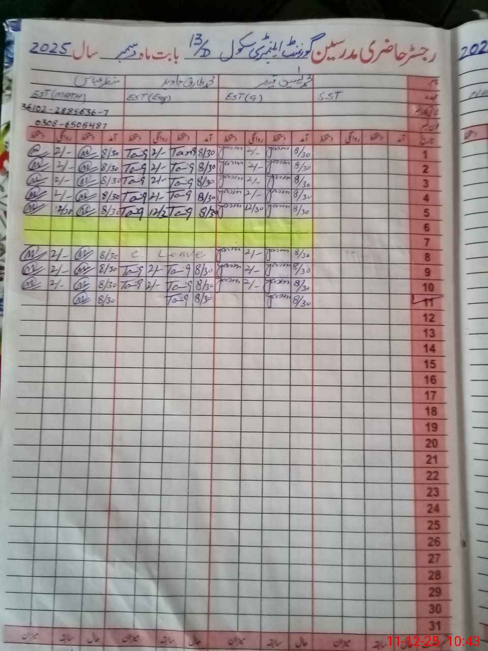 | Name: M.**** QA**** Designation: (School Headmaster's/Headmistress's) EST GENERAL Phone/Cell Number: 03**** |