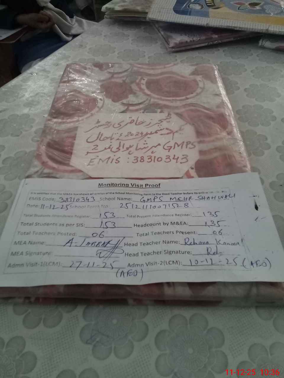 | EMIS Code: 38310343 | Name of School: GMPS MEHR SHAH WALI NO. 2 | |||