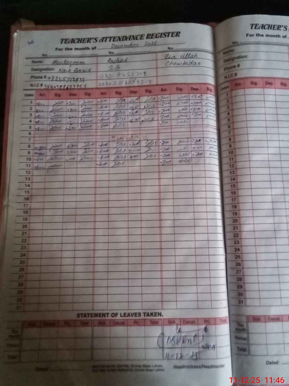 | 35**** | Sa**** Ba**** | EST Urdu | Regular | 0 | 0 | 0 | 0 | 0 | 0 | 0 | 0 | 0 | Absent (Un-Authorized) |