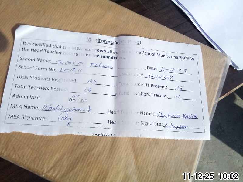 | Attendance Register | Head Teacher | MEA with School | Visit Proof |