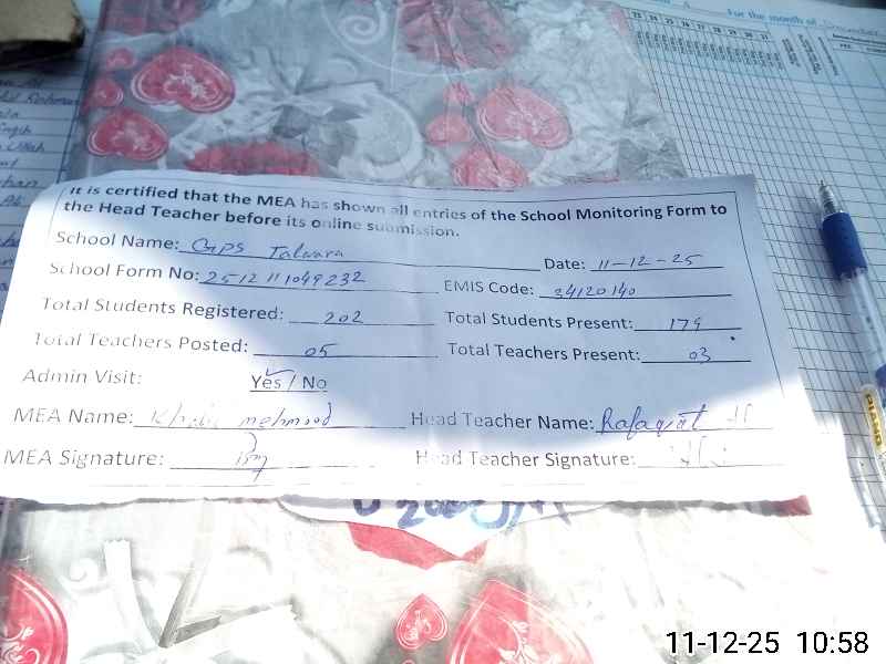 | EMIS Code: 34120140 | Name of School: GPS TALWARA | |||