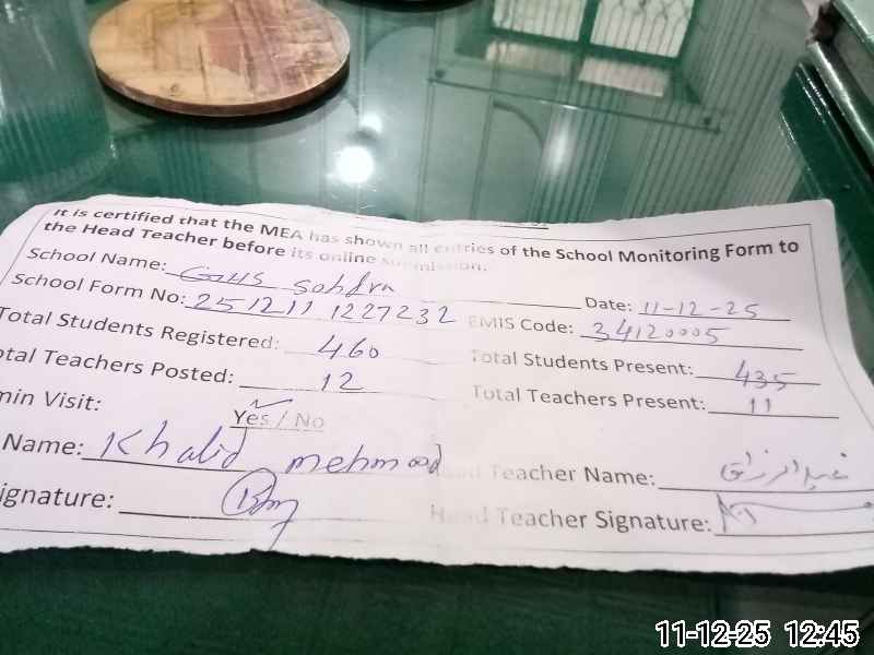 | EMIS Code: 34120005 | Name of School: GHS SOHDRA | |||