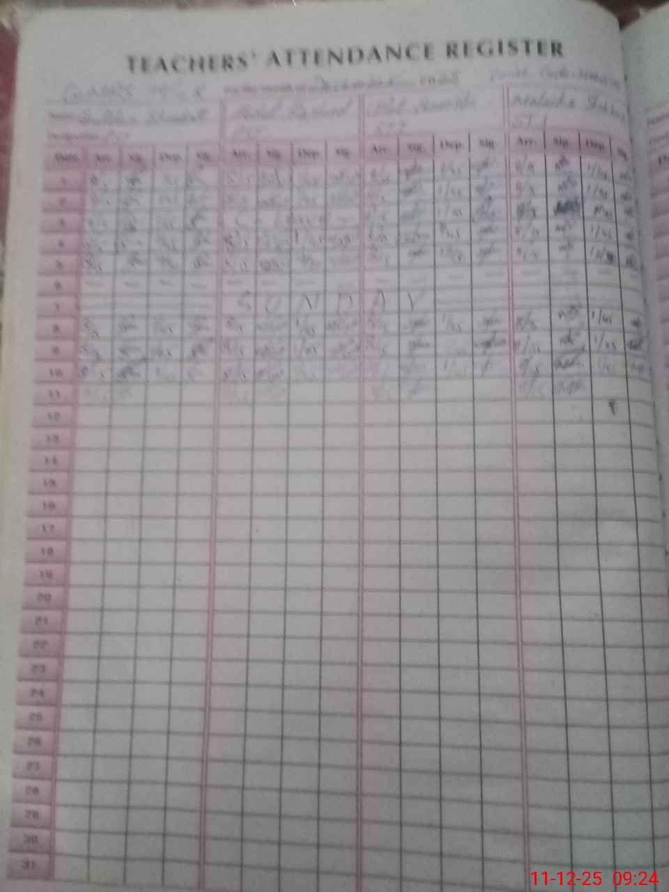 | No. of Students Present - Female | 0 | 9 | 11 | 12 | 5 | 10 | 6 | 73 | ||||||||