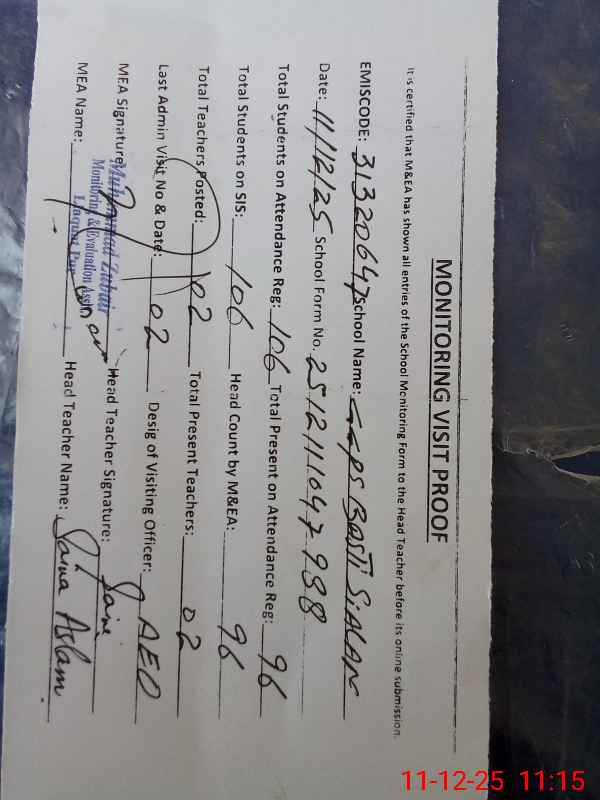 | Attendance Register | Head Teacher | MEA with School | Visit Proof |