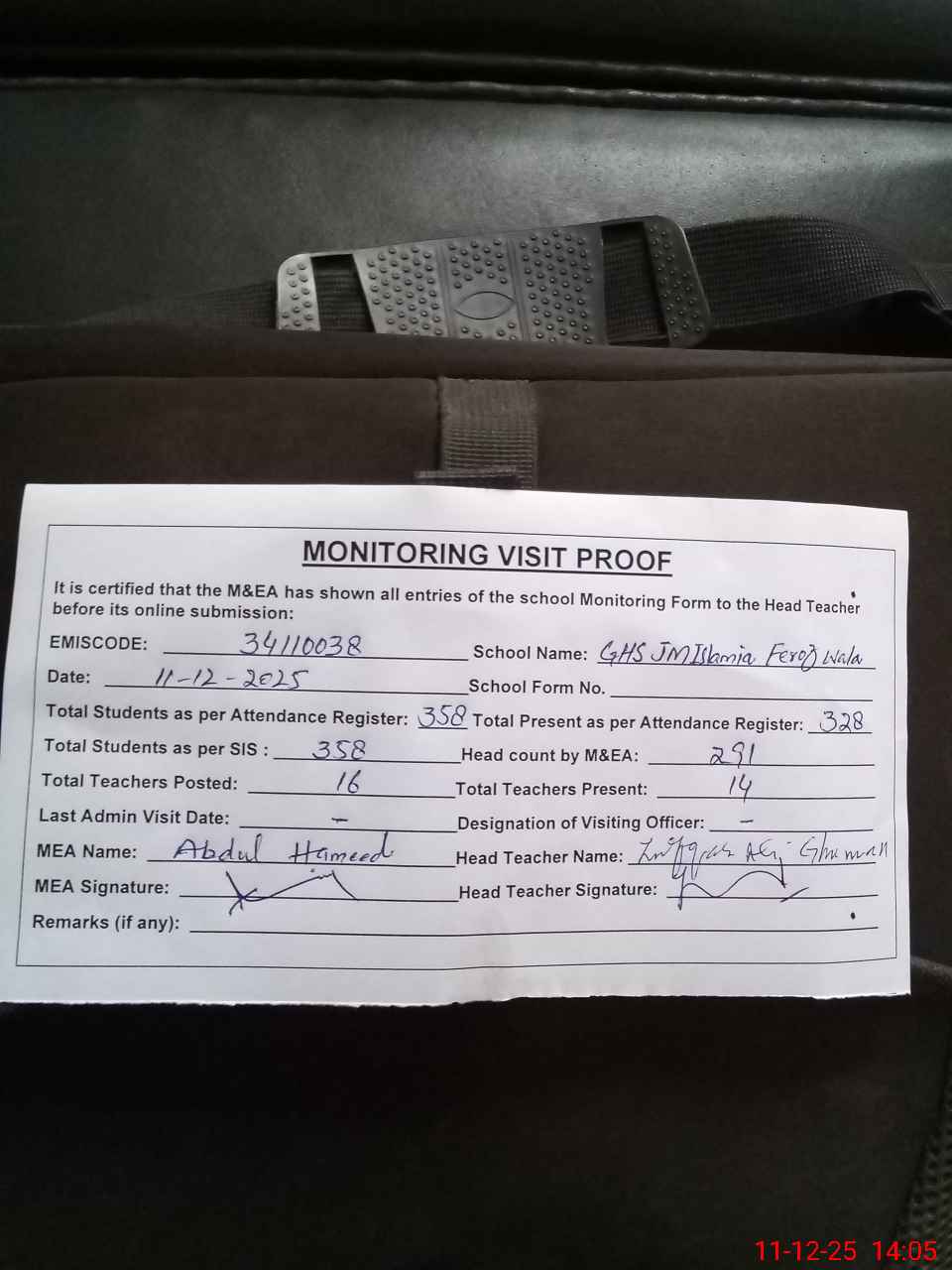 | EMIS Code: 34110038 | Name of School: GHS JM ISLAMIA FEROZ WALA | |||