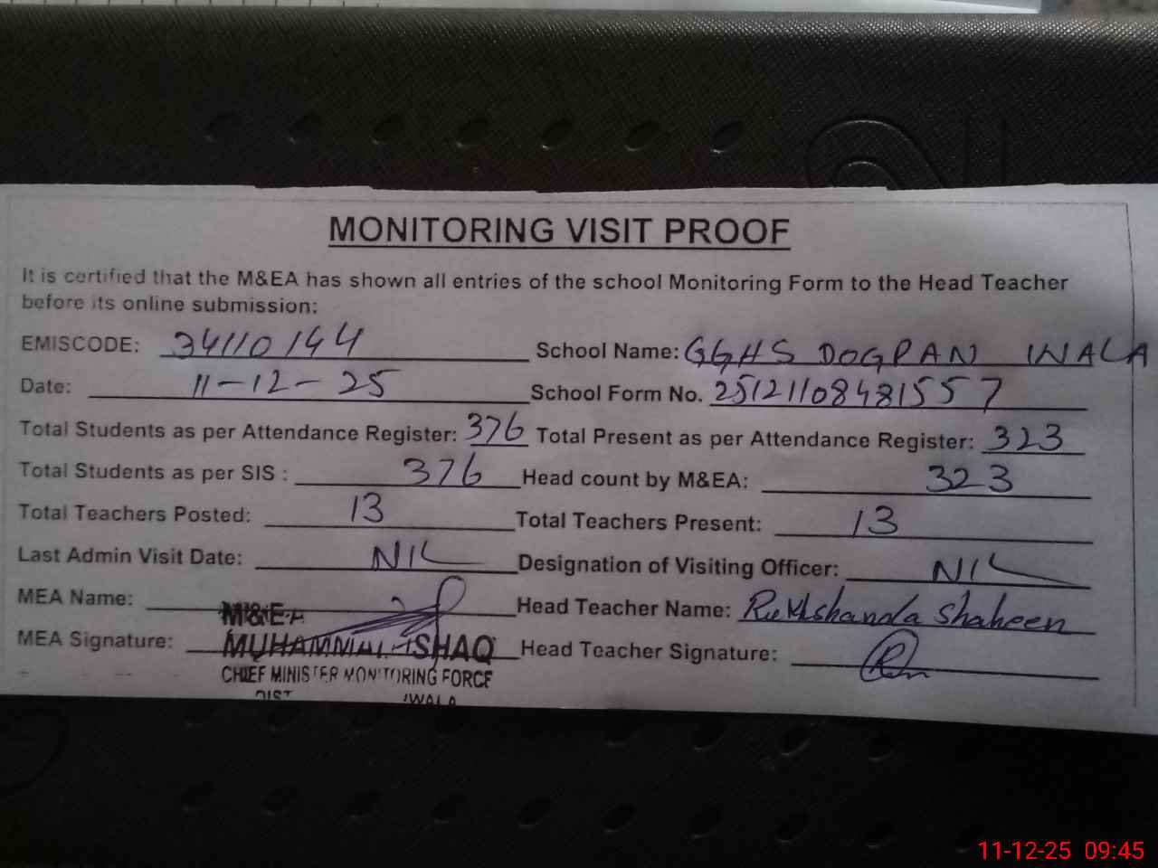 | EMIS Code: 34110144 | Name of School: GGHS DOGRAN WALA | |||