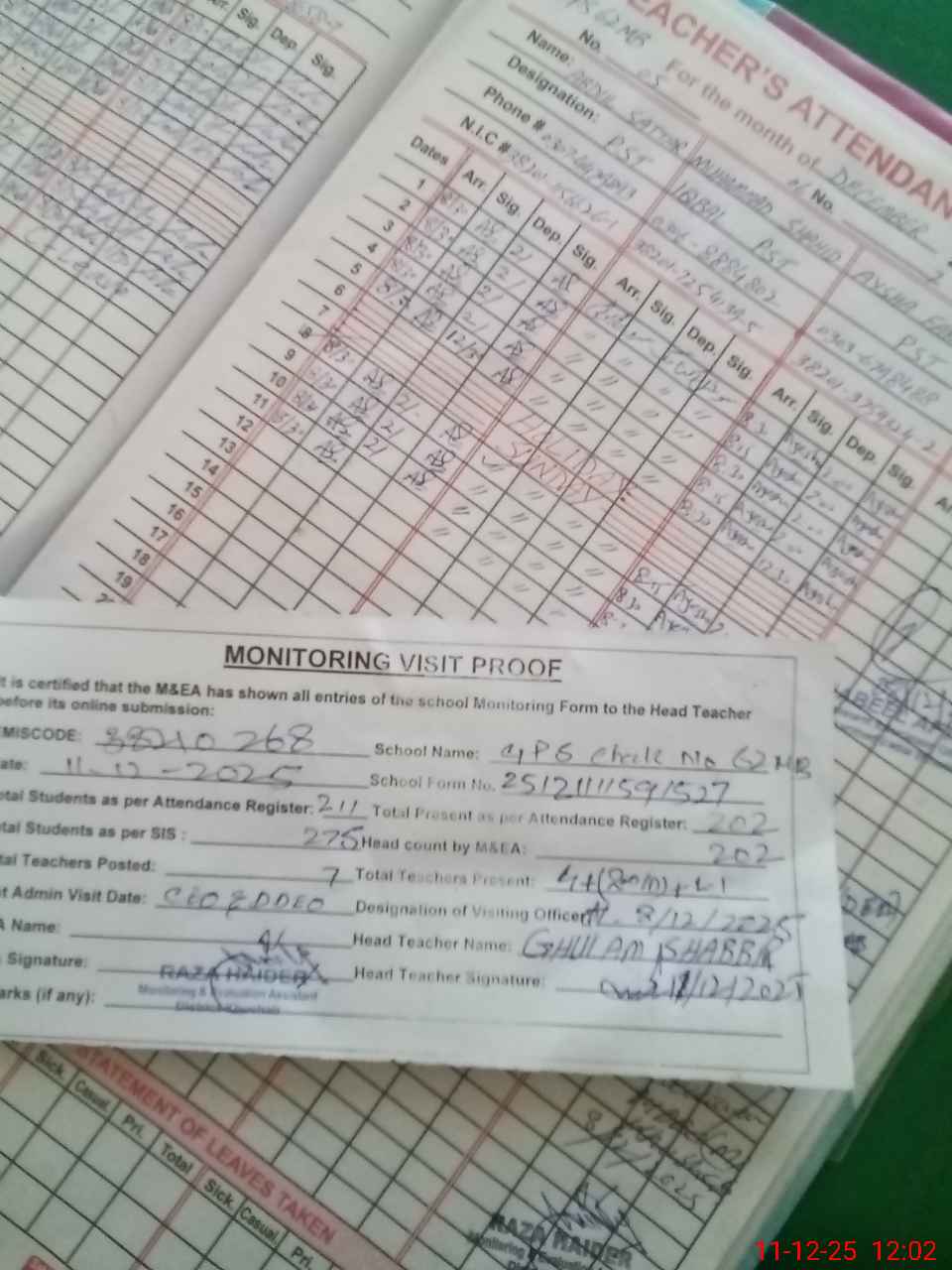 | EMIS Code: 38210268 | Name of School: GPS CHAK NO 62 MB | |||