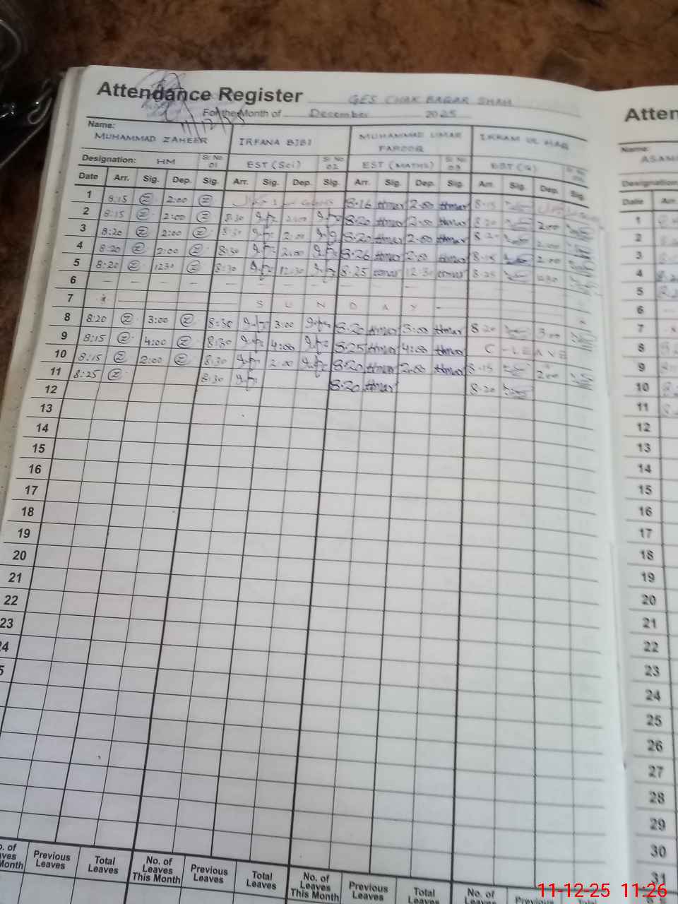 | CNIC | Full Name | Designation | R/C | Absence During Last Calender Month |