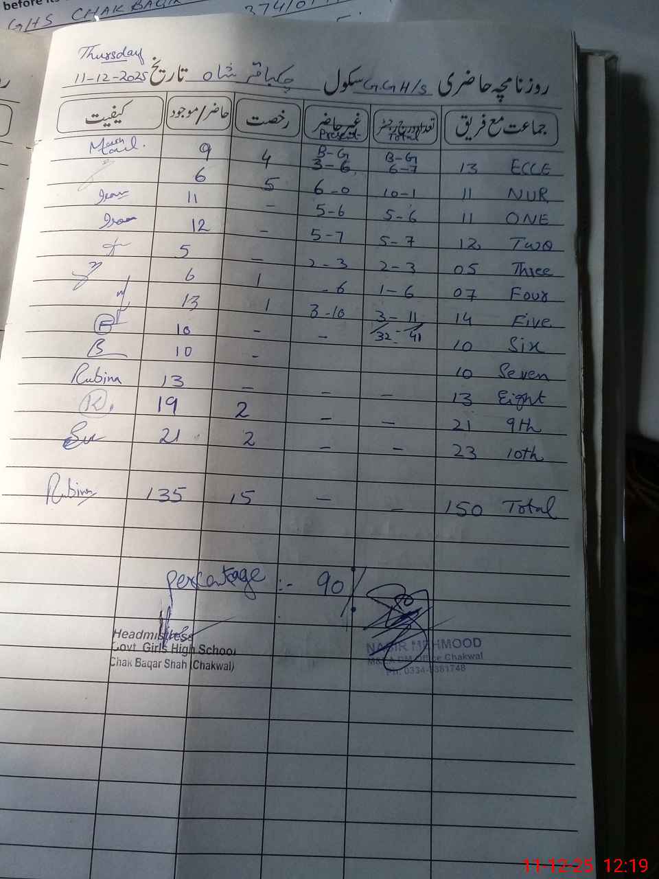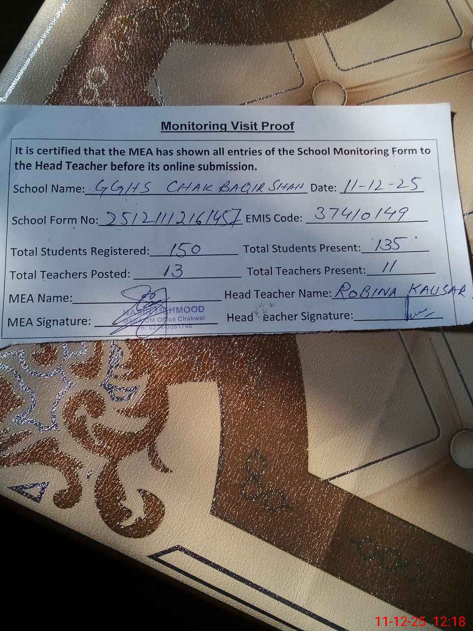 | EMIS Code: 37410149 | Name of School: GGHS CHAK BAQAR SHAH | |||