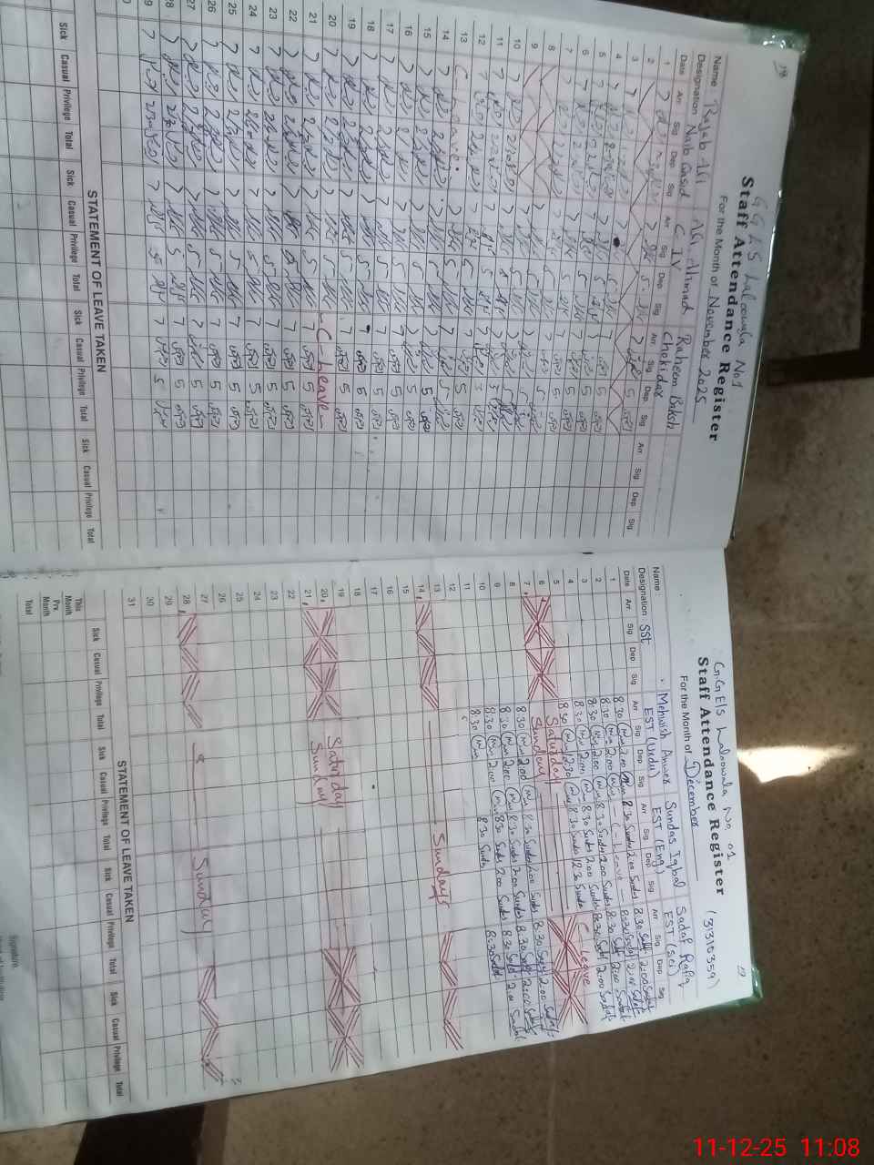 | CNIC | Full Name | Designation | R/C | Absence During Last Calender Month |