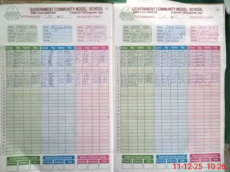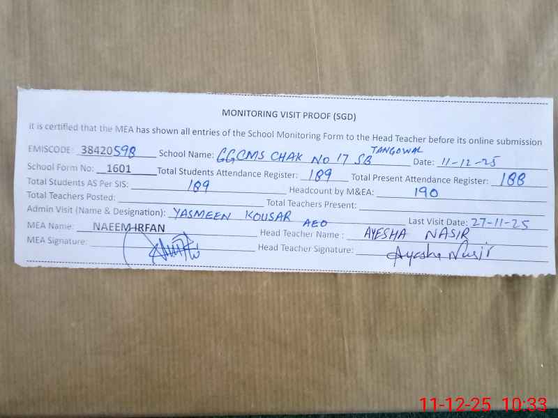 | EMIS Code: 38420598 | Name of School: GGCMS CHAK NO.17 SB TANGOWALI | |||