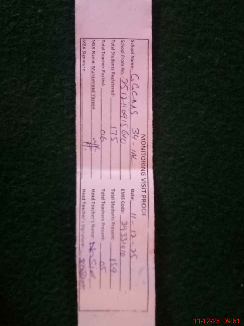 | Monitoring Date: 11-12-2025 | Start Time: 11-12-2025 09:15 AM | End Time: 11-12-2025 09:53 AM | Name of MEA: MU**** YA**** | |