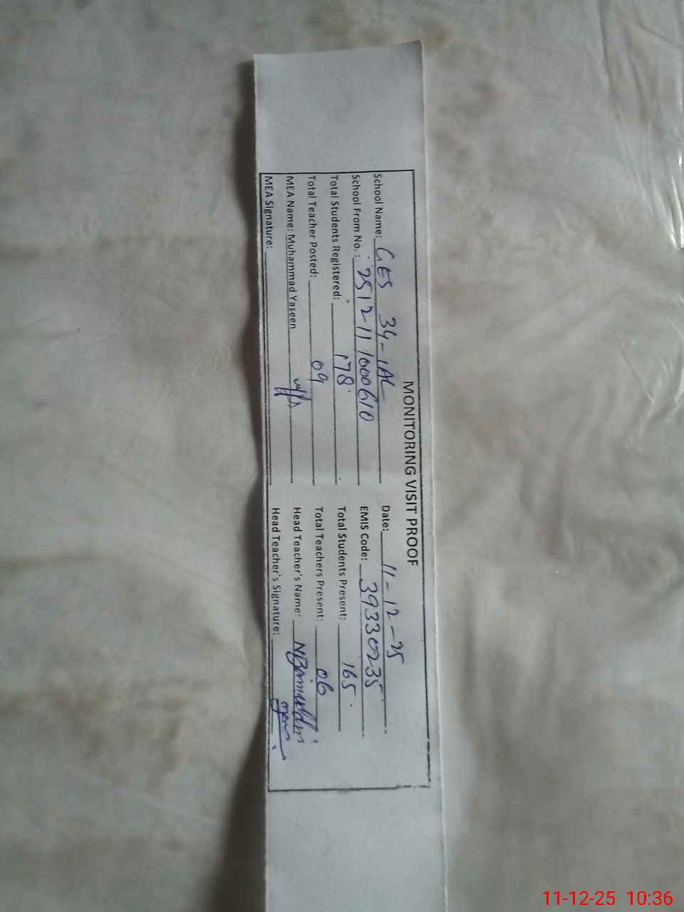 | EMIS Code: 39330235 | Name of School: GES CHAK 34/1-AL | |||