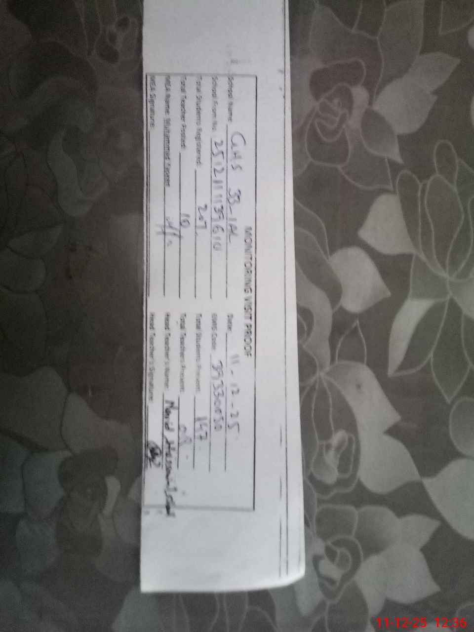 | Attendance Register | Head Teacher | MEA with School | Visit Proof |