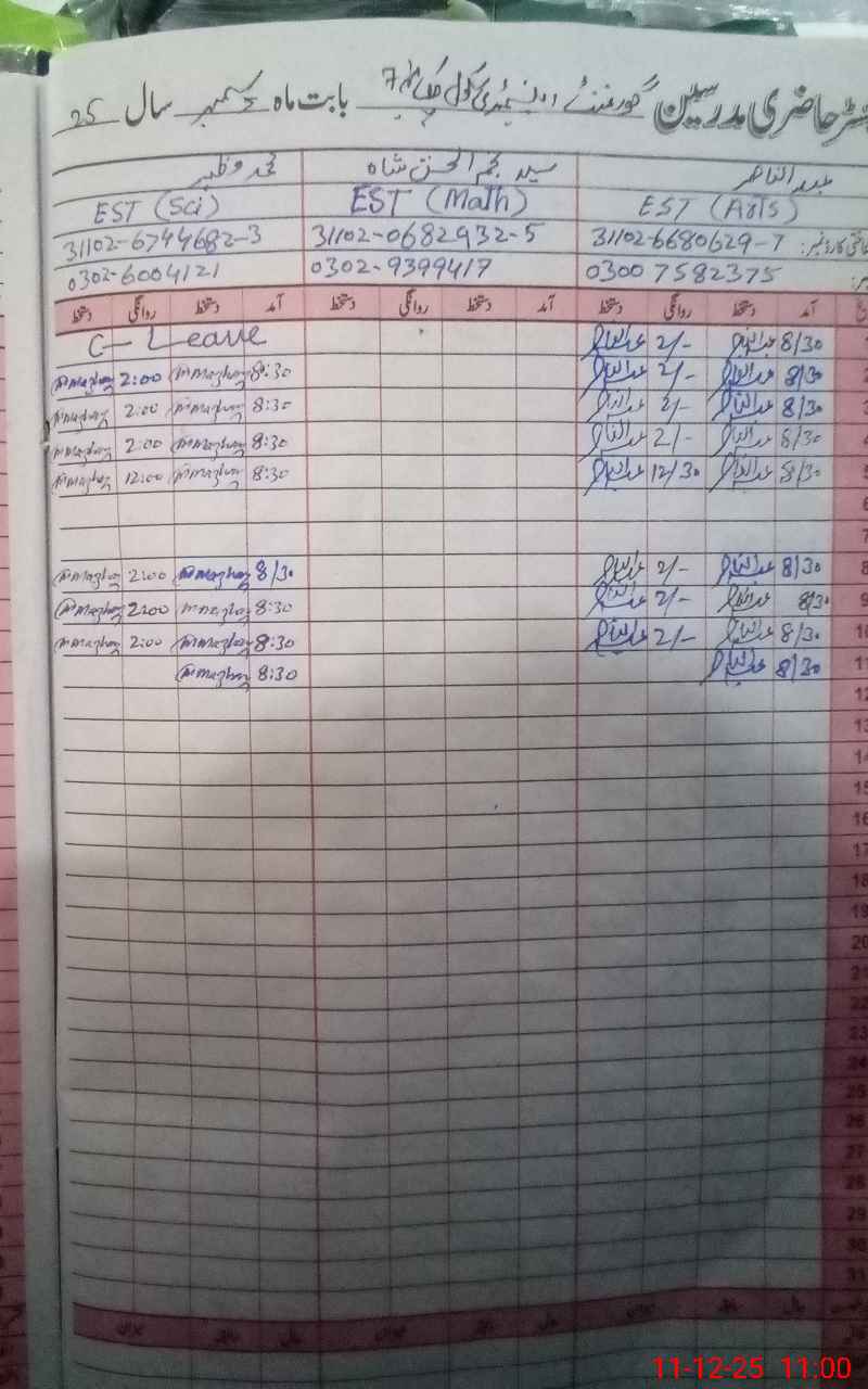 | Name: AB**** NA**** Designation: (School Headmaster's/Headmistress's) EST G Phone/Cell Number: 03**** |