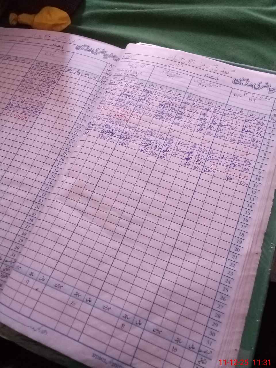| CNIC | Full Name | Designation | R/C | Absence During Last Calender Month |