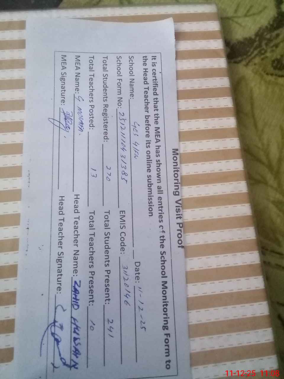 | EMIS Code: 31120146 | Name of School: GES CHAK 4/FW | |||