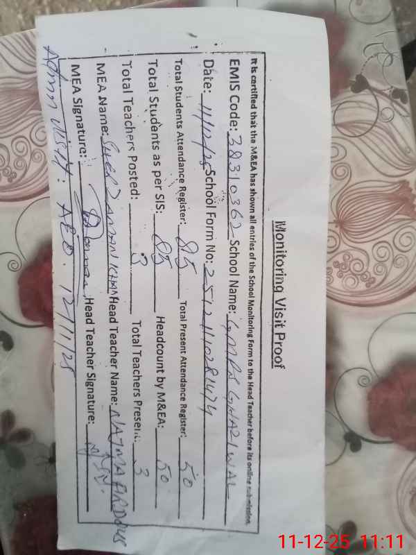 | EMIS Code: 38310362 | Name of School: GMPS GHAZI WAL | |||