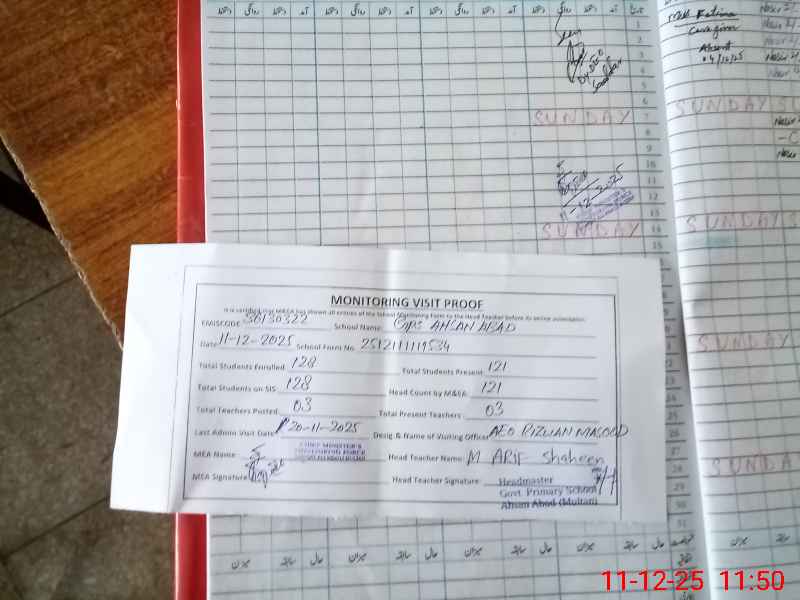 | EMIS Code: 36130322 | Name of School: GPS AHSAN ABAD | |||