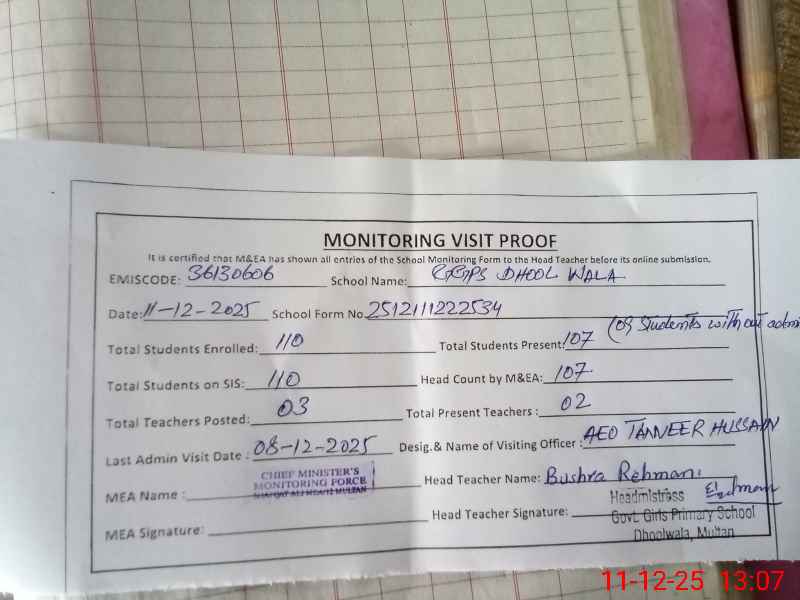| EMIS Code: 36130606 | Name of School: GGPS DHOOL WALA | |||