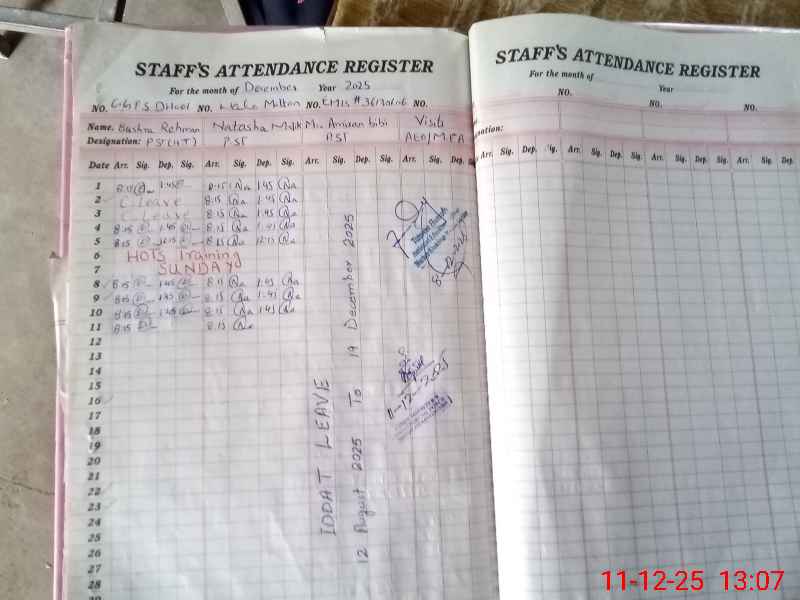| Attendance Register | Head Teacher | MEA with School | Visit Proof |