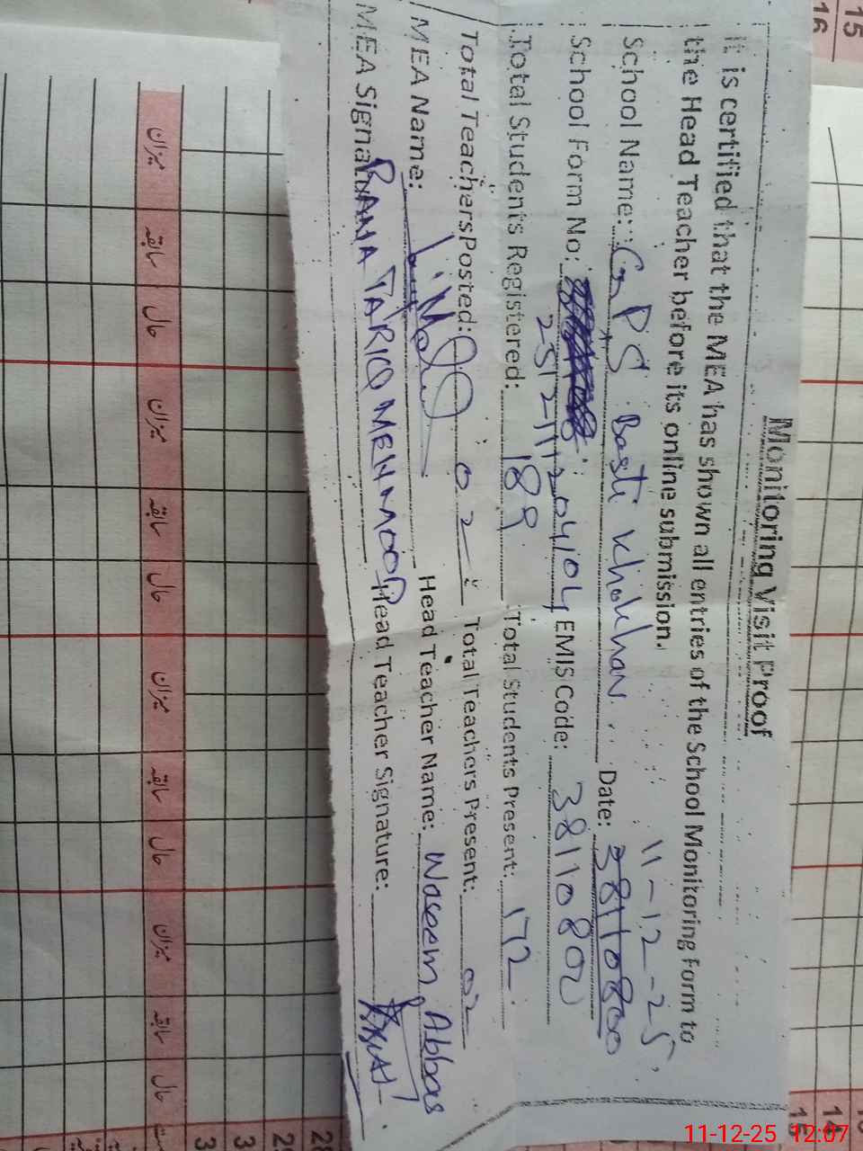| EMIS Code: 38110800 | Name of School: GPS BASTI KHOKHAR | |||