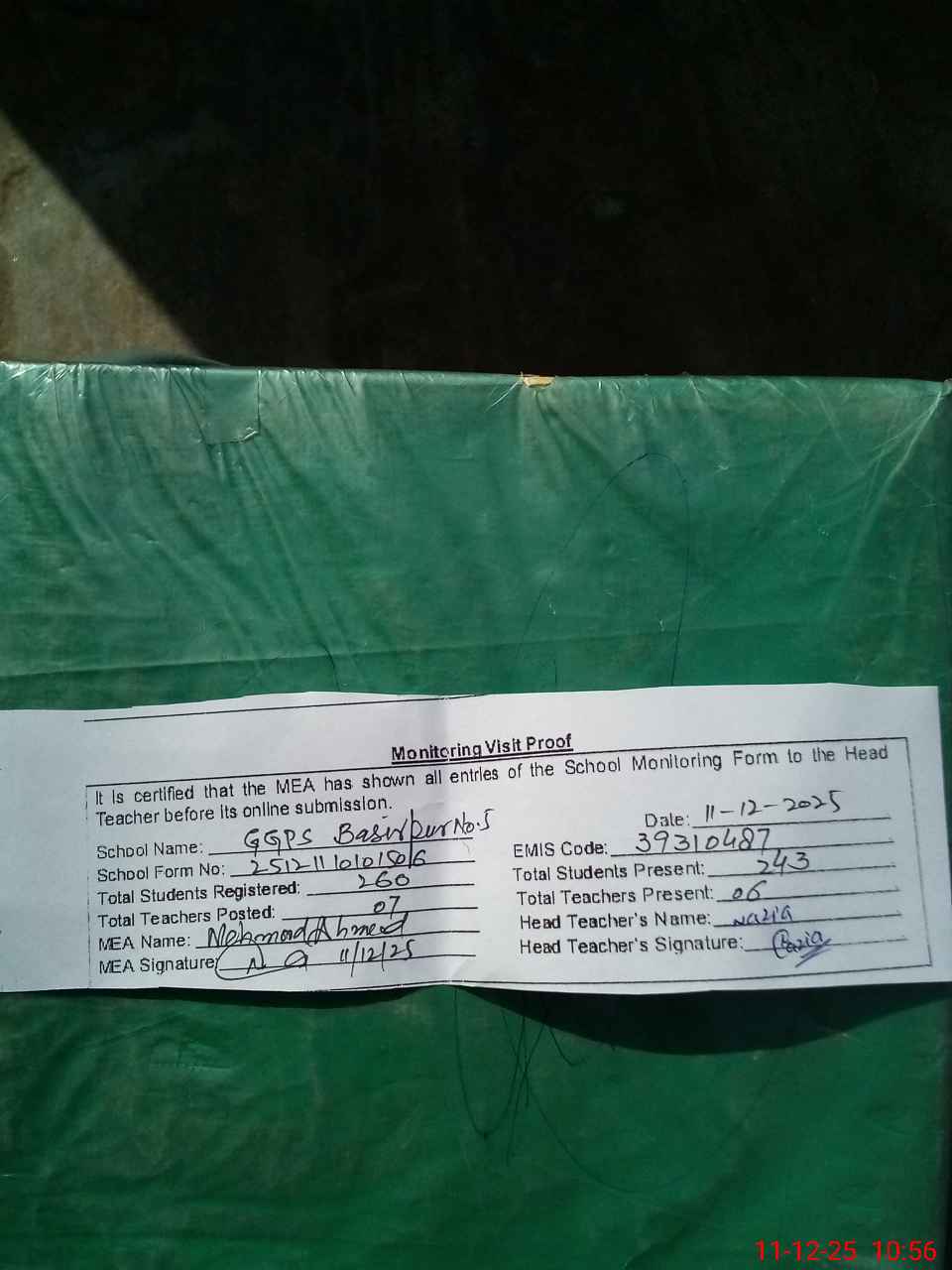 | EMIS Code: 39310487 | Name of School: GGPS NO. 5 BASIR PUR | |||