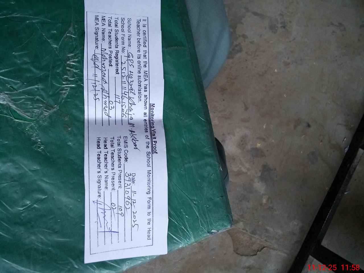 | EMIS Code: 39310962 | Name of School: GPS HAZRAT KHAWAJA M AKBAR BASIR PUR | |||
