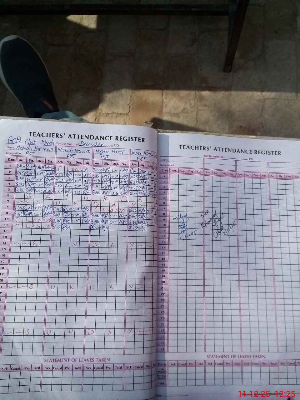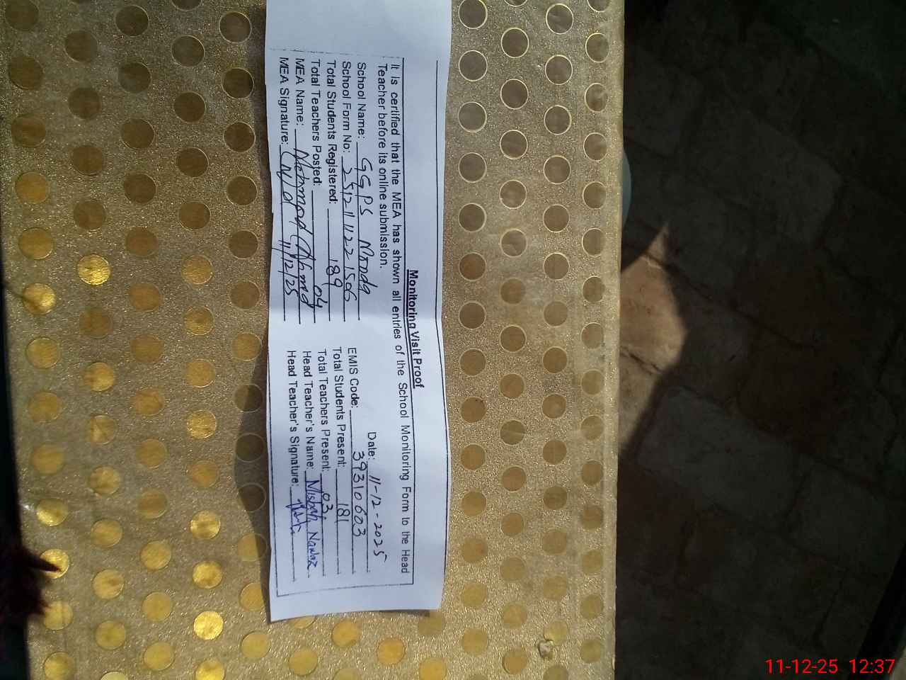 | Attendance Register | Head Teacher | MEA with School | Visit Proof |