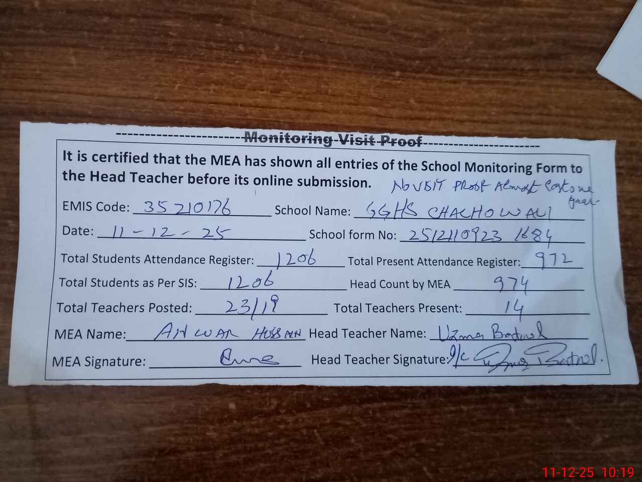| Remarks (Use Separate Page if Required): Hina Rafique PST absent wef 18 August 2025 to till to date STI induction interviews were conducted No visitors proof almost last one year All School building required white wash 35210176 | |||||