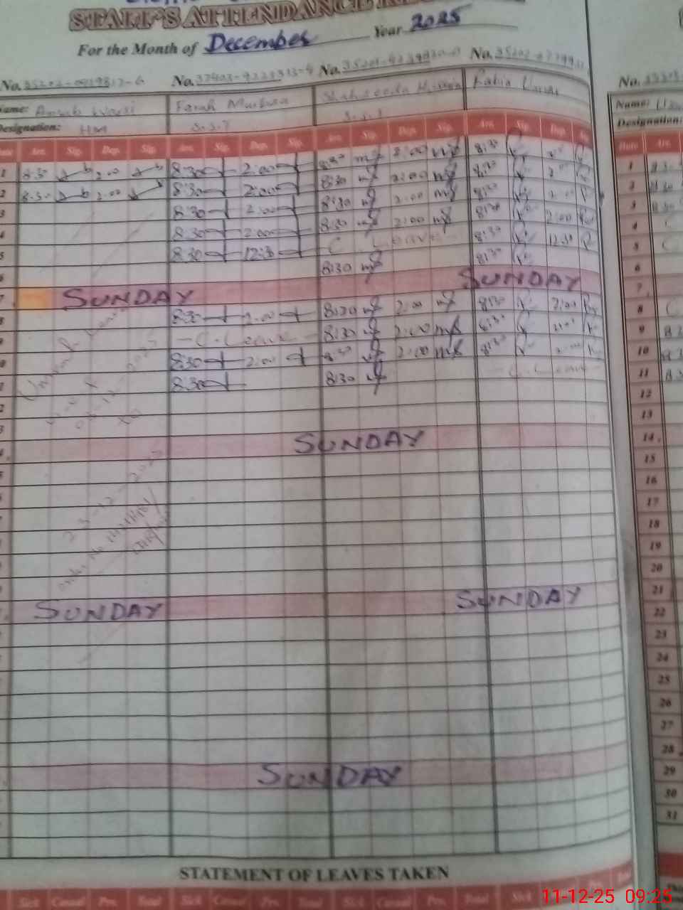 | 34**** | Hi**** Ra**** | Regular | 0 | 0 | 30 | 0 | 0 | 0 | 0 | 0 | 0 | Absent (Un-Authorized) | |