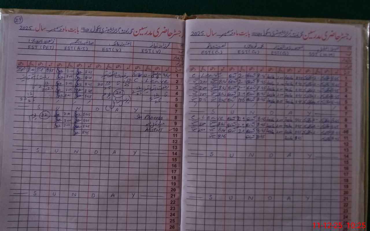 | 36**** | Za**** Pa**** | Regular | 29 | 0 | 0 | 0 | 0 | 0 | 0 | 0 | 29 | Absent (Un-Authorized) | |