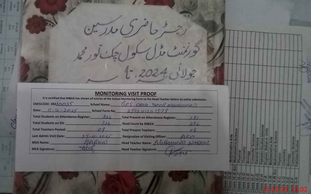 | EMIS Code: 39210035 | Name of School: GES CHAK NOOR MUHAMMAD | |||