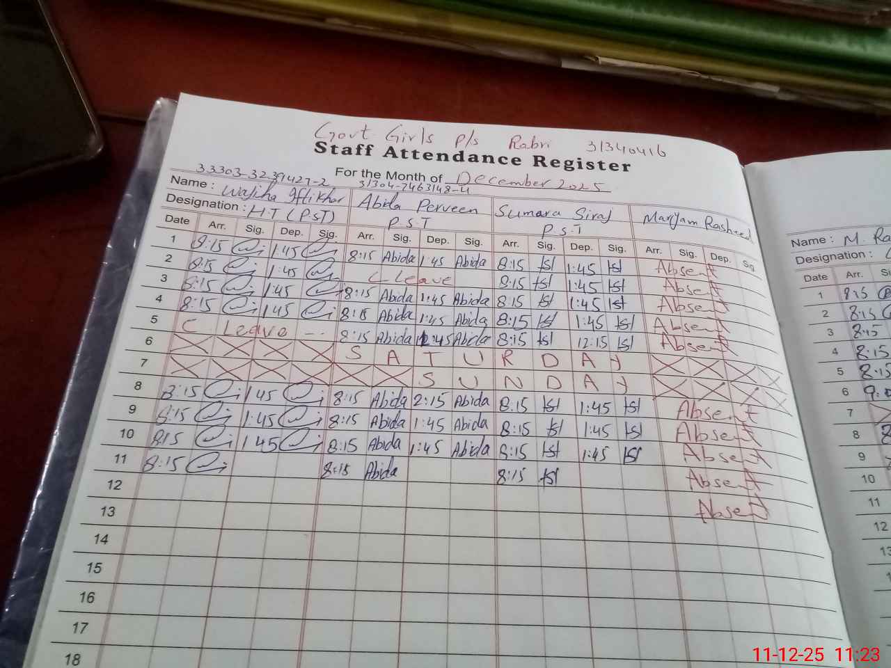 | Remarks (Use Separate Page if Required): Maryam Rasheed pst absent since 20th oct 2025 till to date | |||||