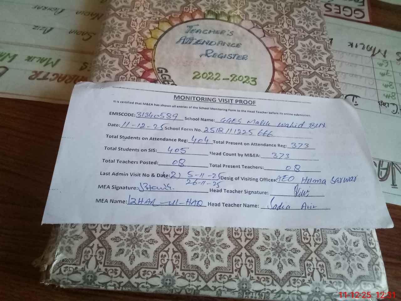 | EMIS Code: 31340589 | Name of School: GGES MALIK WAHID BUX | |||