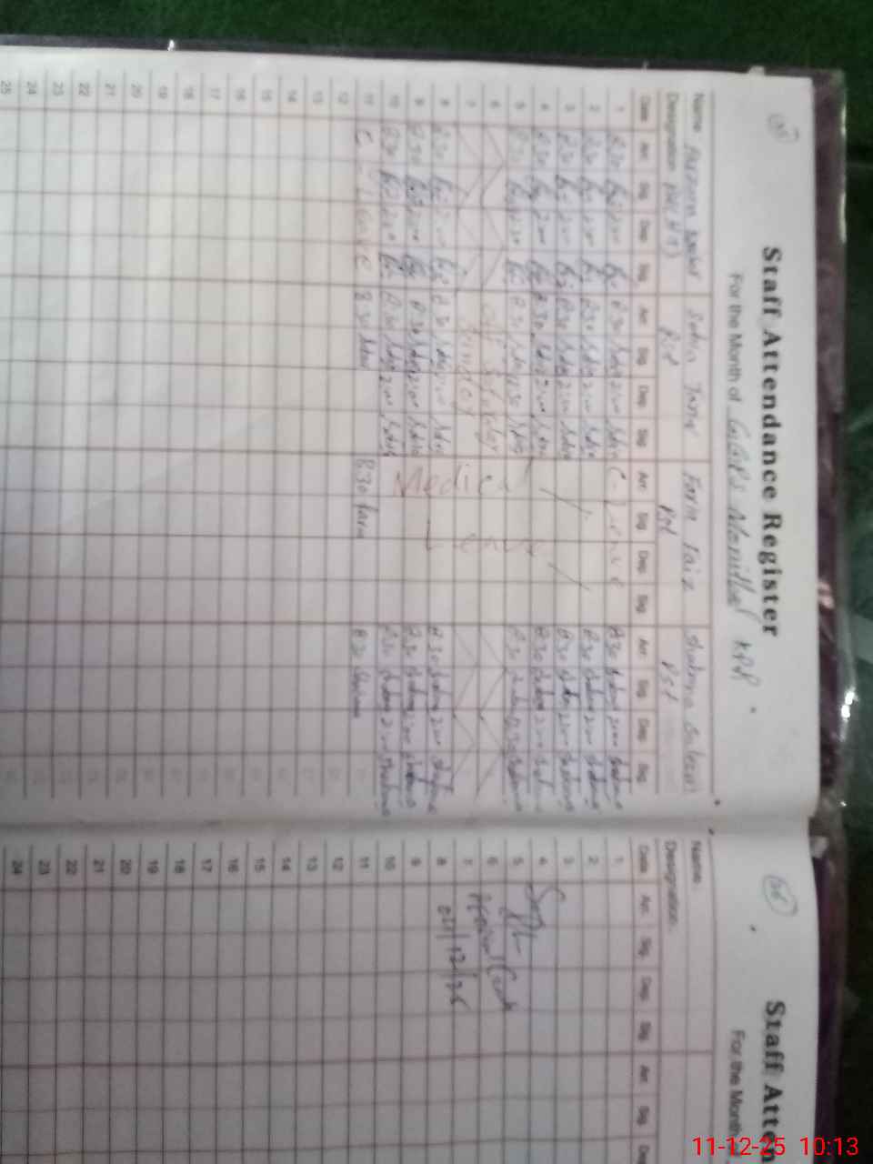 | CNIC | Full Name | Designation | R/C | Absence During Last Calender Month |