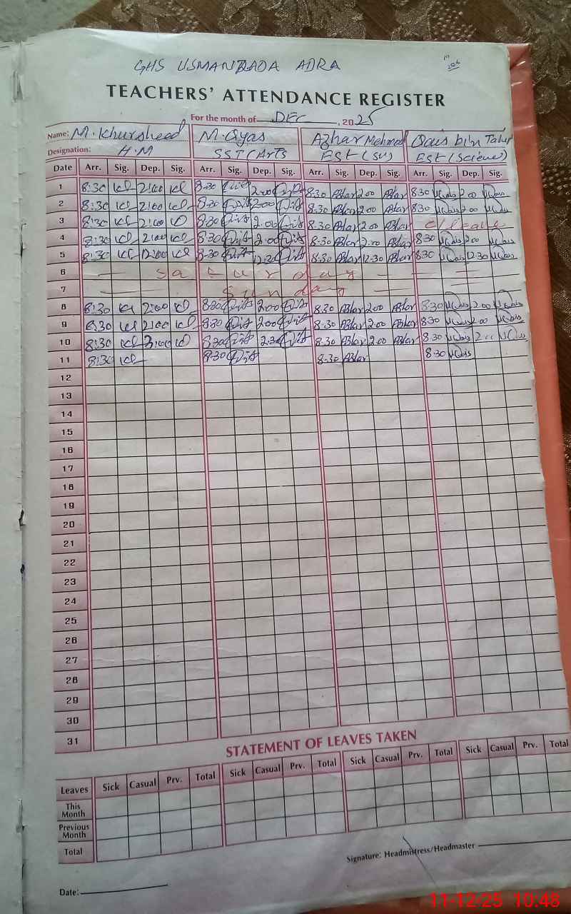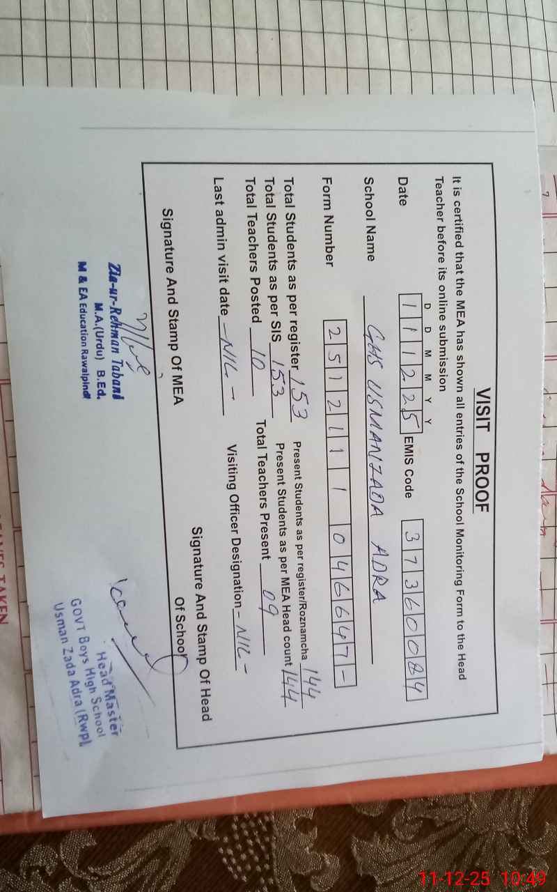 | EMIS Code: 37360084 | Name of School: GHS USMAN ZADA ADRAH | |||