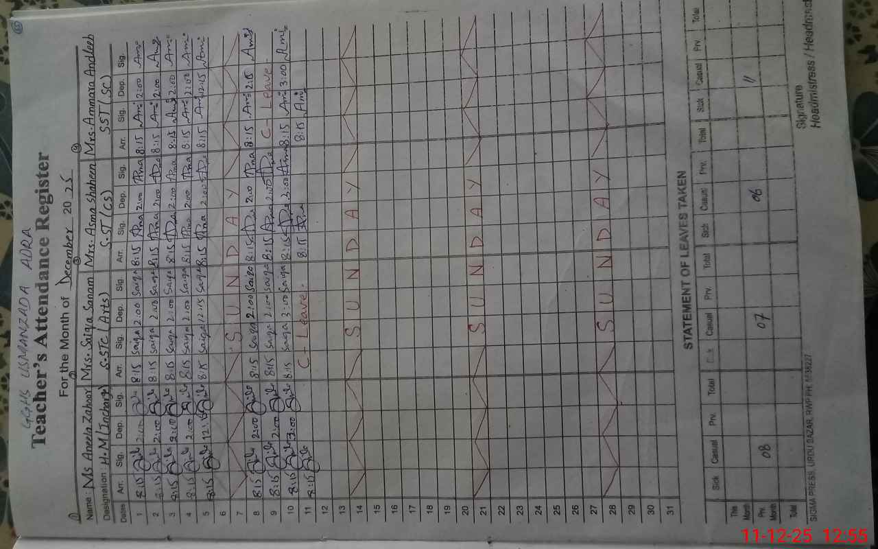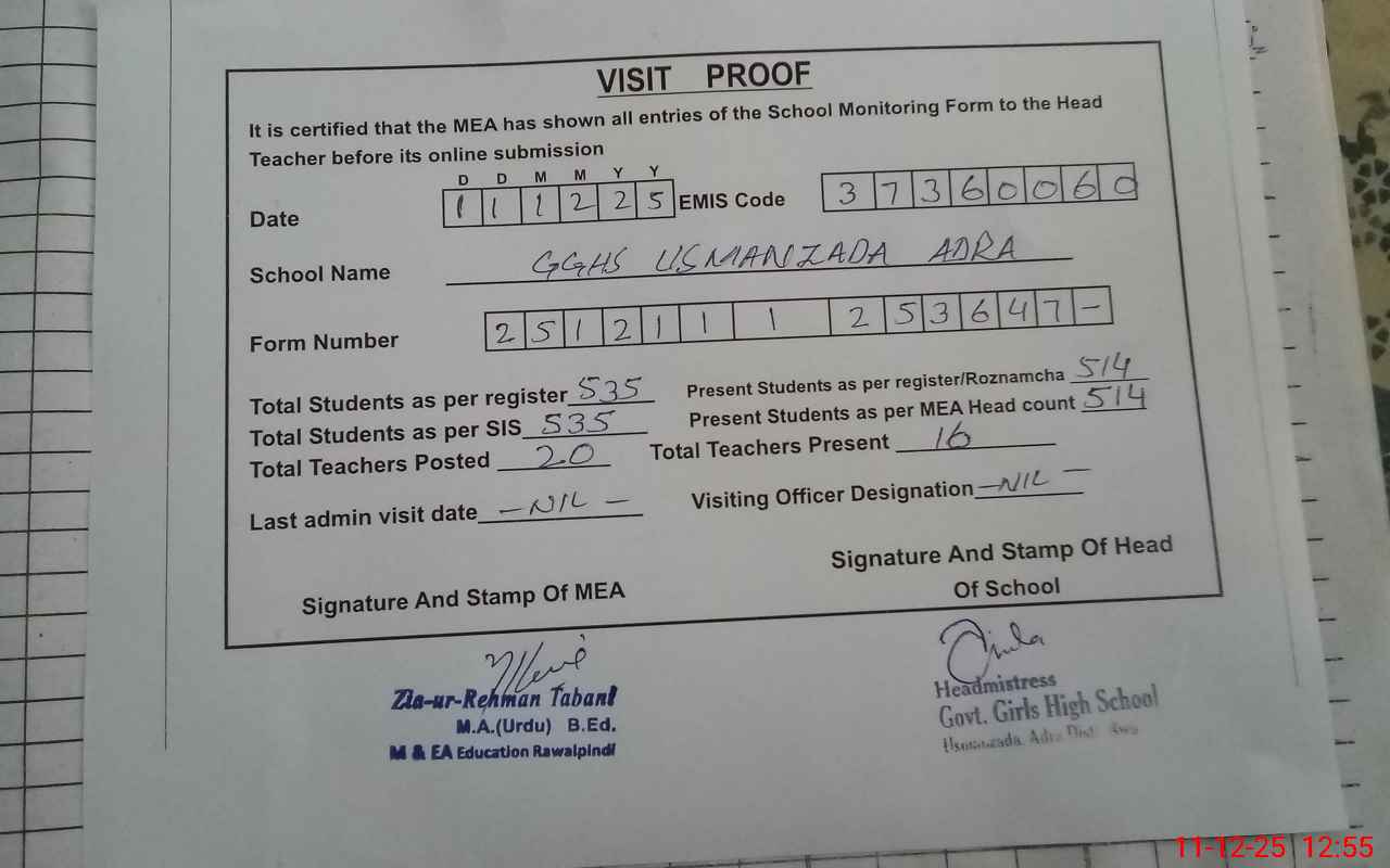 | EMIS Code: 37360060 | Name of School: GGHS USMAN ZADA ADRA | |||
