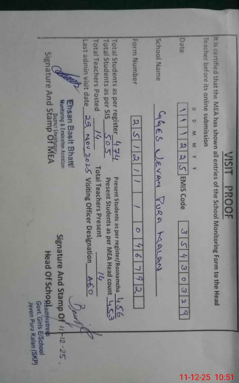 | EMIS Code: 35430329 | Name of School: GGES JEVAN PURA KALAN | |||