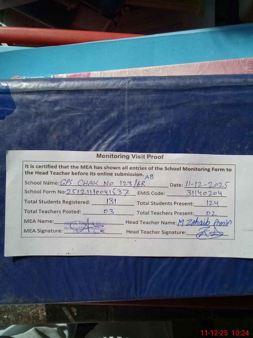 | EMIS Code: 31140204 | Name of School: GPS CHAK NO 123/6-R (A-B) | |||