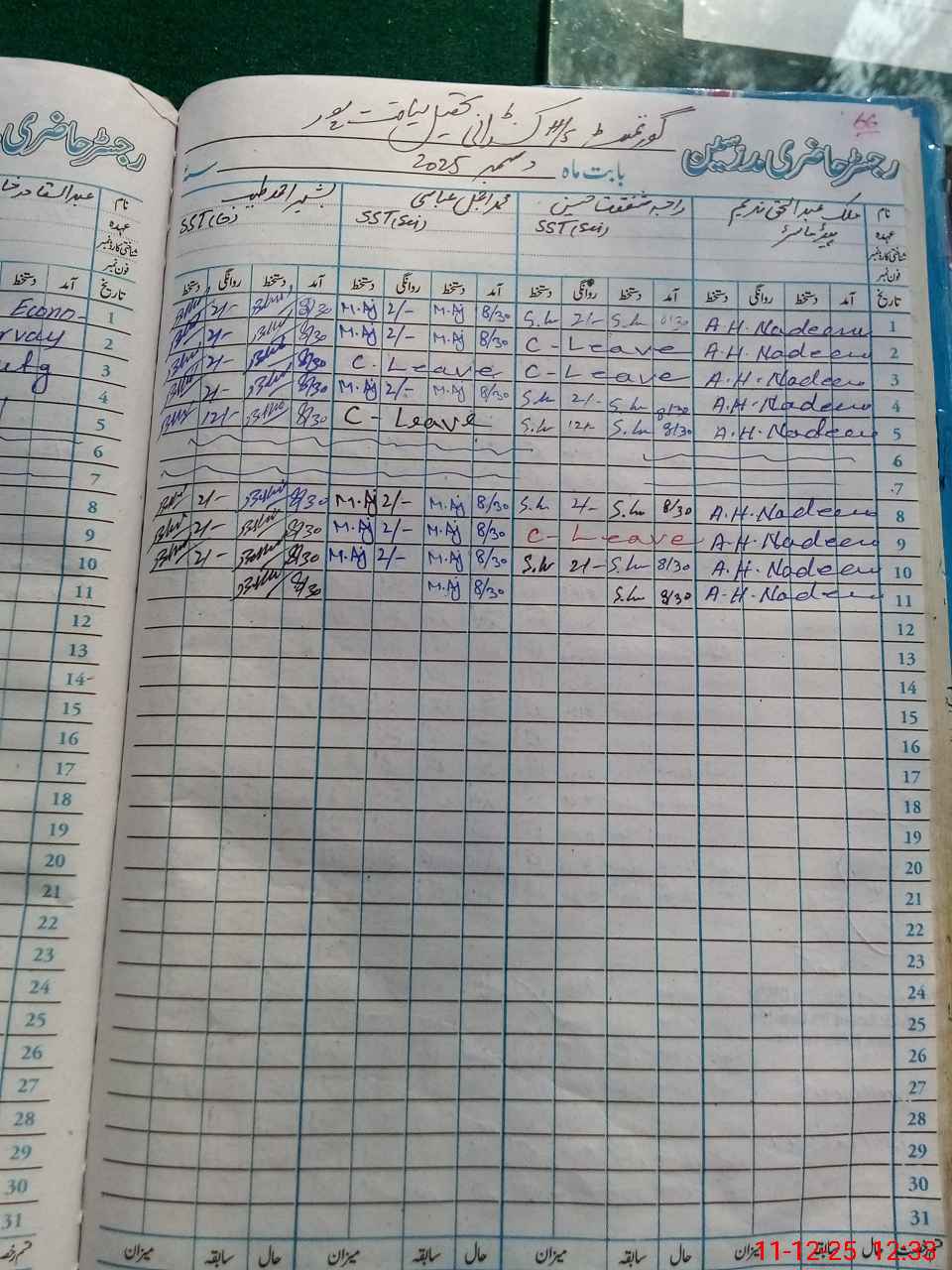 | CNIC | Full Name | Designation | R/C | Absence During Last Calender Month |