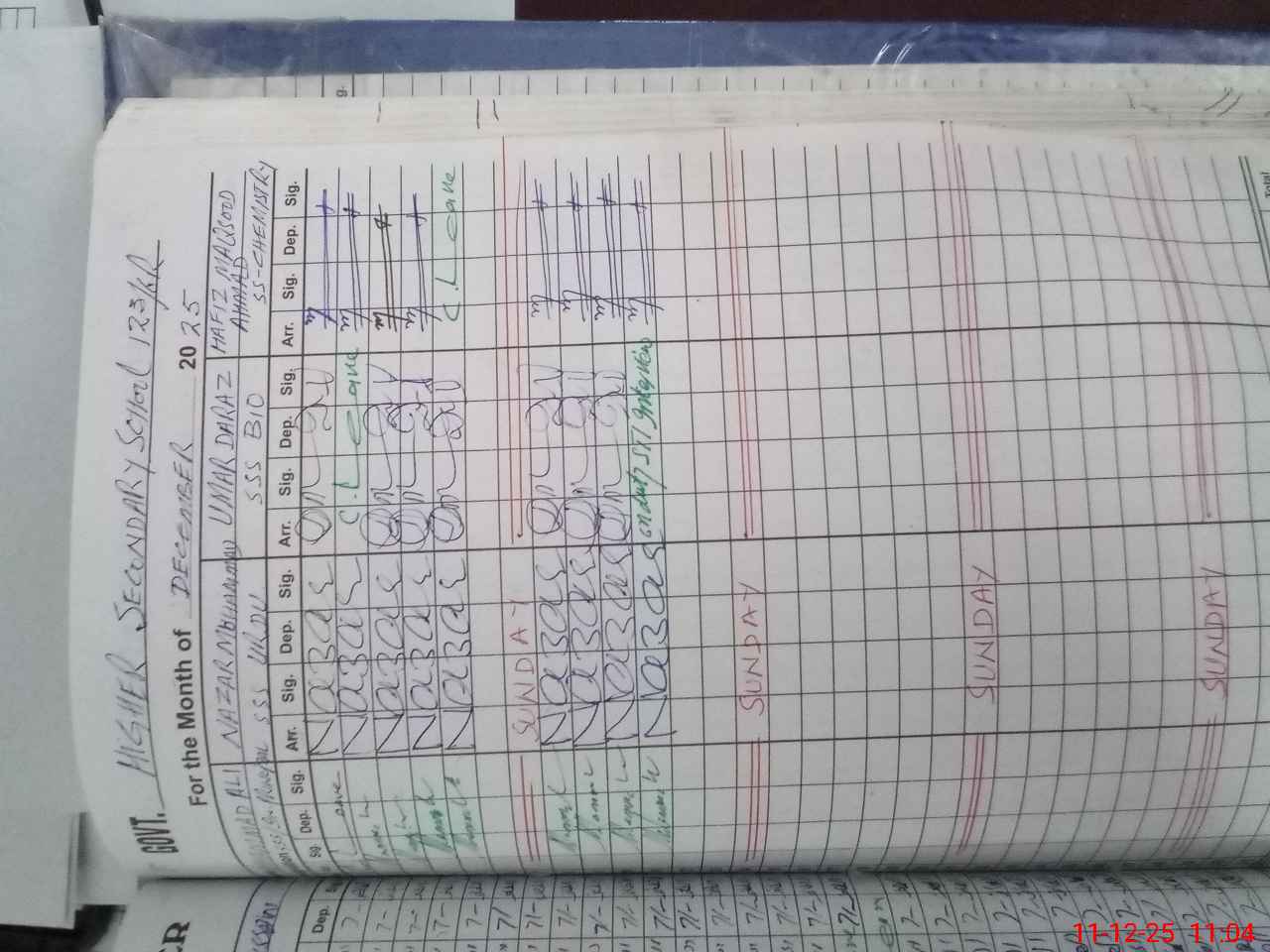 | CNIC | Full Name | Designation | R/C | Absence During Last Calender Month |