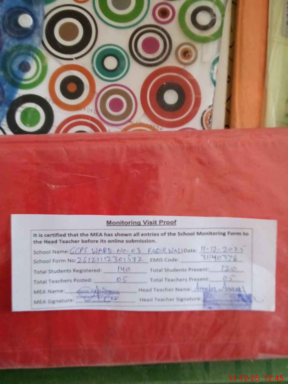 | EMIS Code: 31140376 | Name of School: GGPS WARD NO. 3 FAQIR WALI | |||