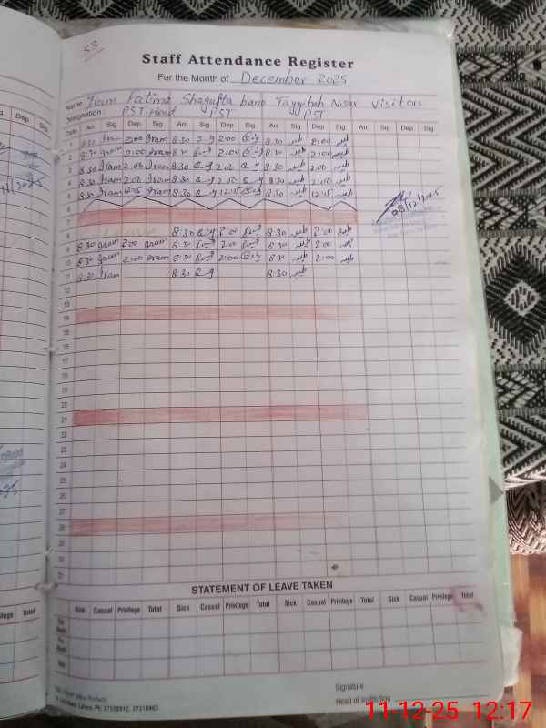 | Name: IR**** FA**** Designation: (School Headmaster's/Headmistress's) PST Phone/Cell Number: 03**** |