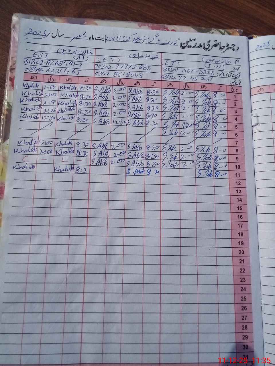 | Name: SH**** JA**** Designation: (School Headmaster's/Headmistress's) EST (G) Phone/Cell Number: 03**** |